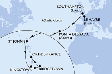 Гавр / Париж Фор-де-Франс, о. Мартиника (6 городов/портов в 4 странах)